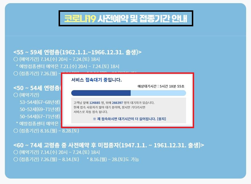 5월 13일부터 시작된 60~64세 코로나19 예방접종 사전예약입니다.